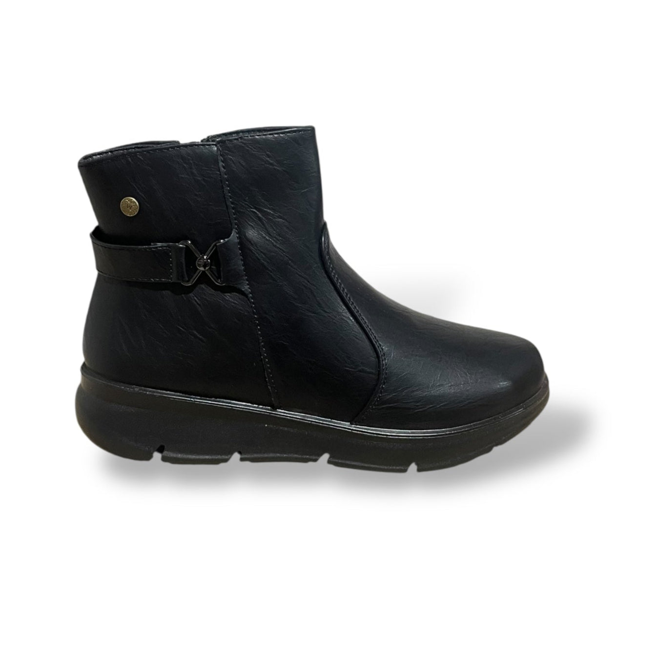 Botín negro con plantilla de gel, aplique de decoración, cremallera lateral y suela antideslizante