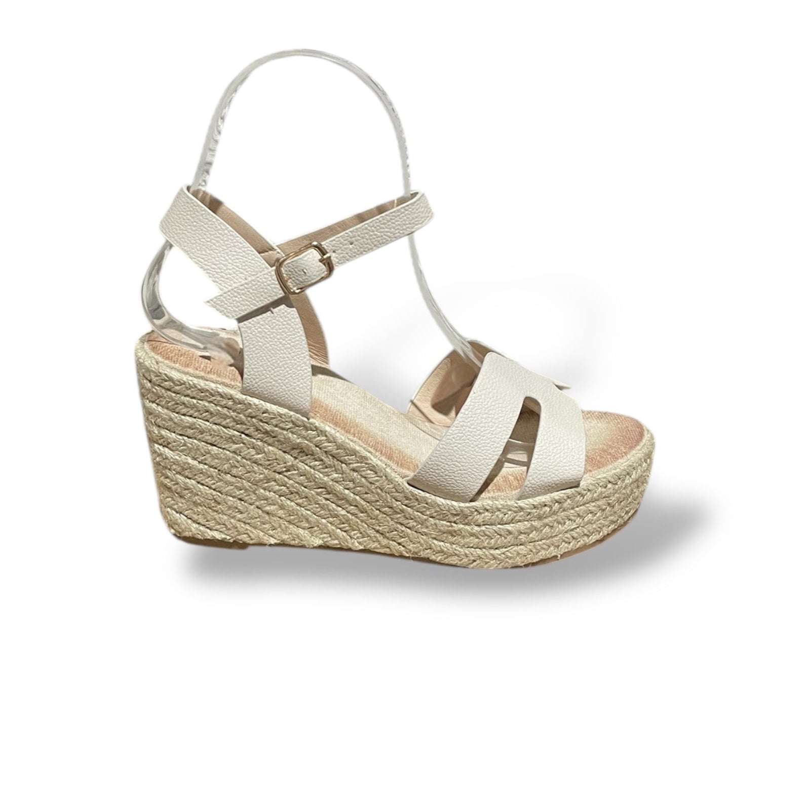 Cuña beige con cierre de hebilla con tira en los dedos con plantilla de gel color beige