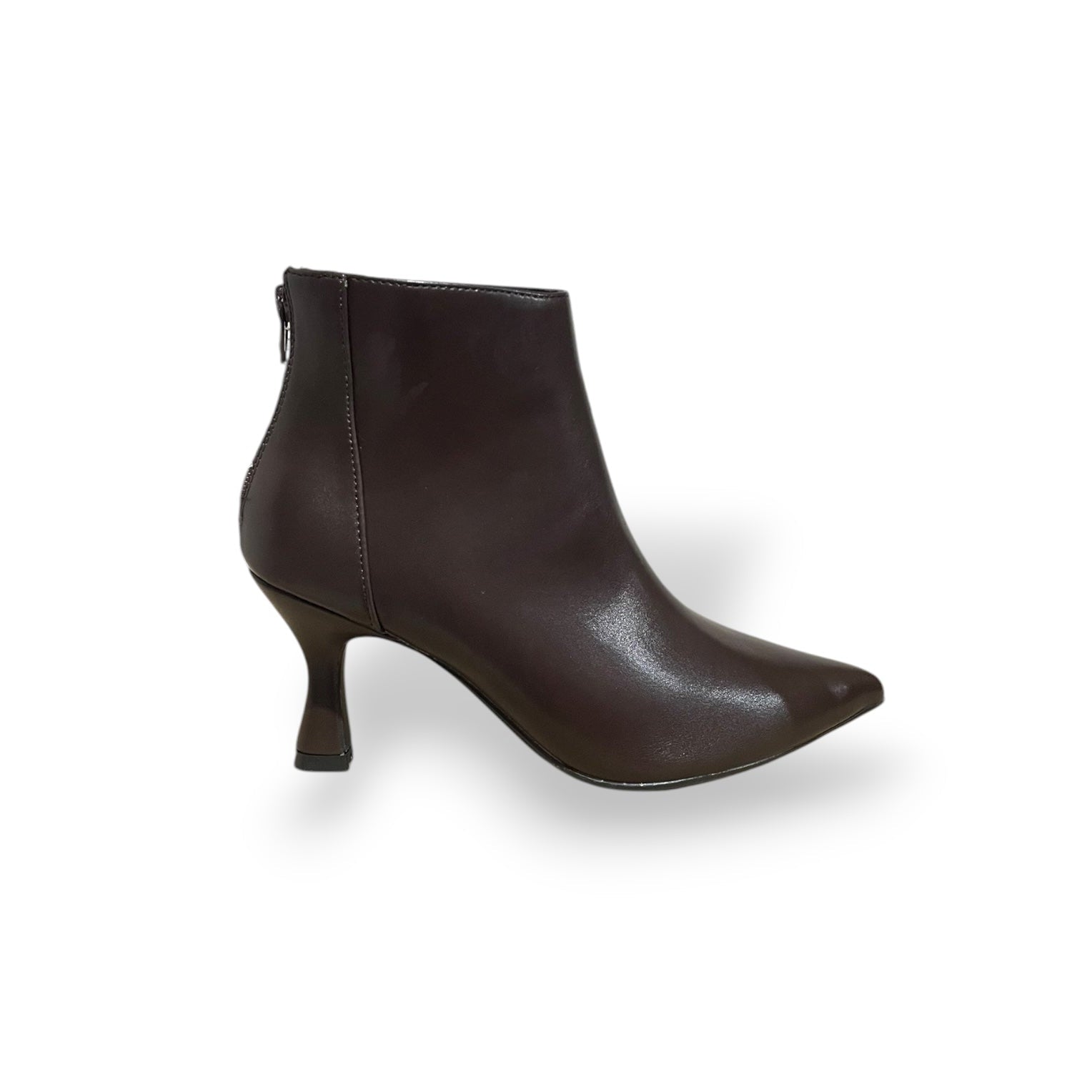 Botín marrón chocolate, cremallera trasera, puntera de pico, tacón 8cm y plantilla de gel