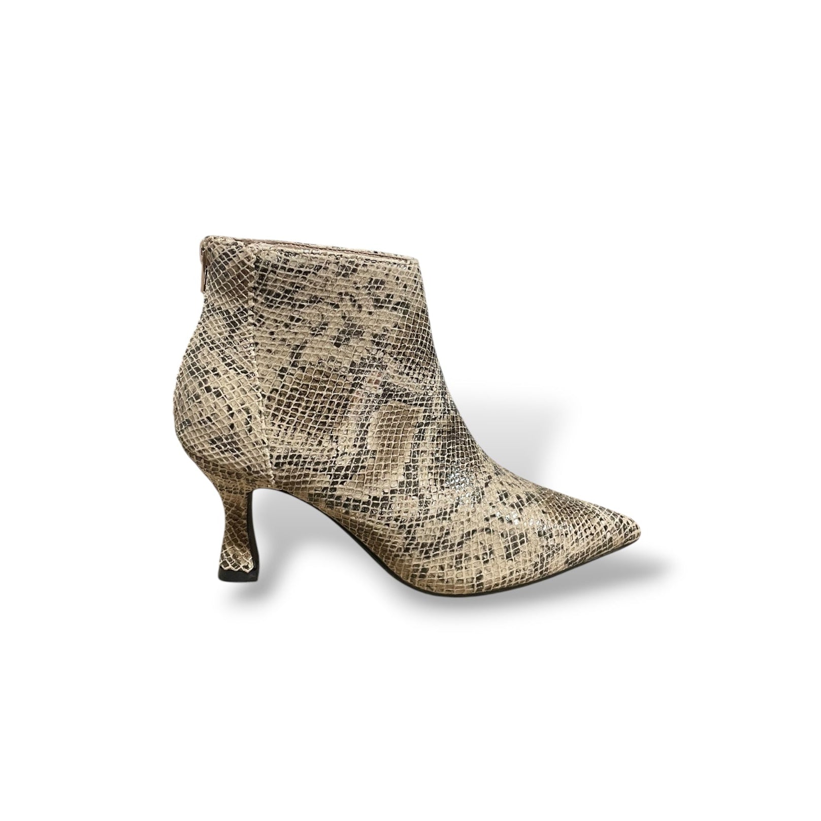 Botín estampado de serpiente, cremallera trasera, puntera de pico, tacón 8cm y plantilla de gel