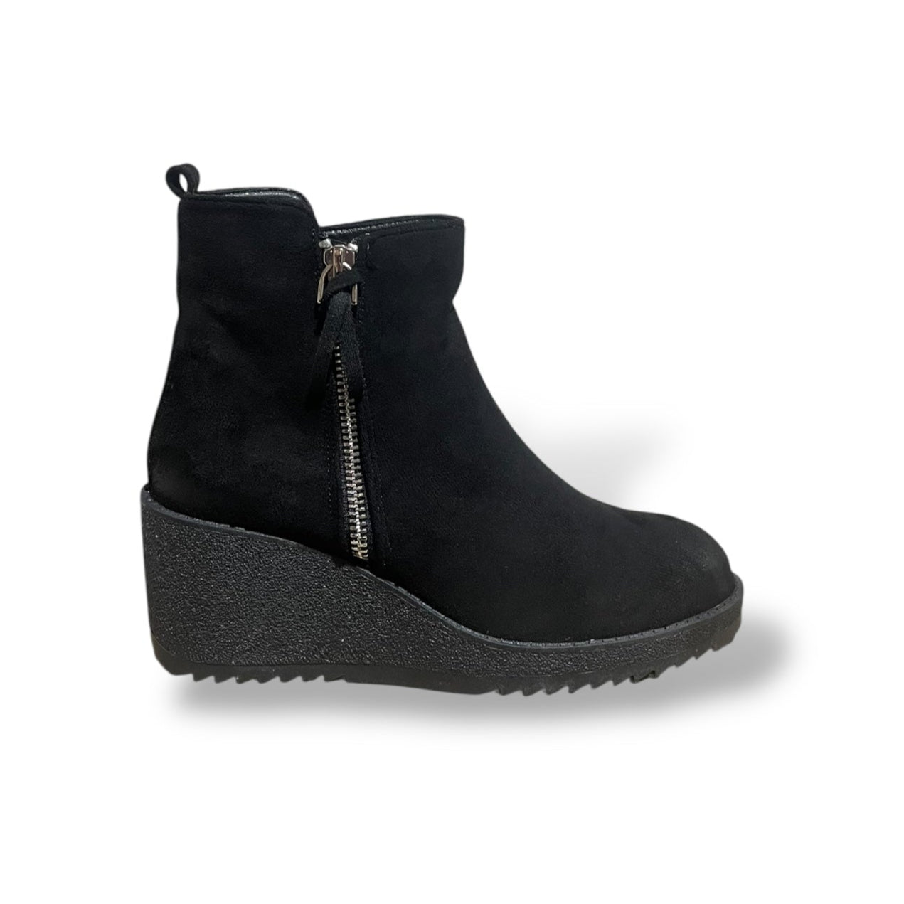 Botín con cuña de suela de tocino antideslizante, cremallera funcional, puntera redonda y plantilla de gel