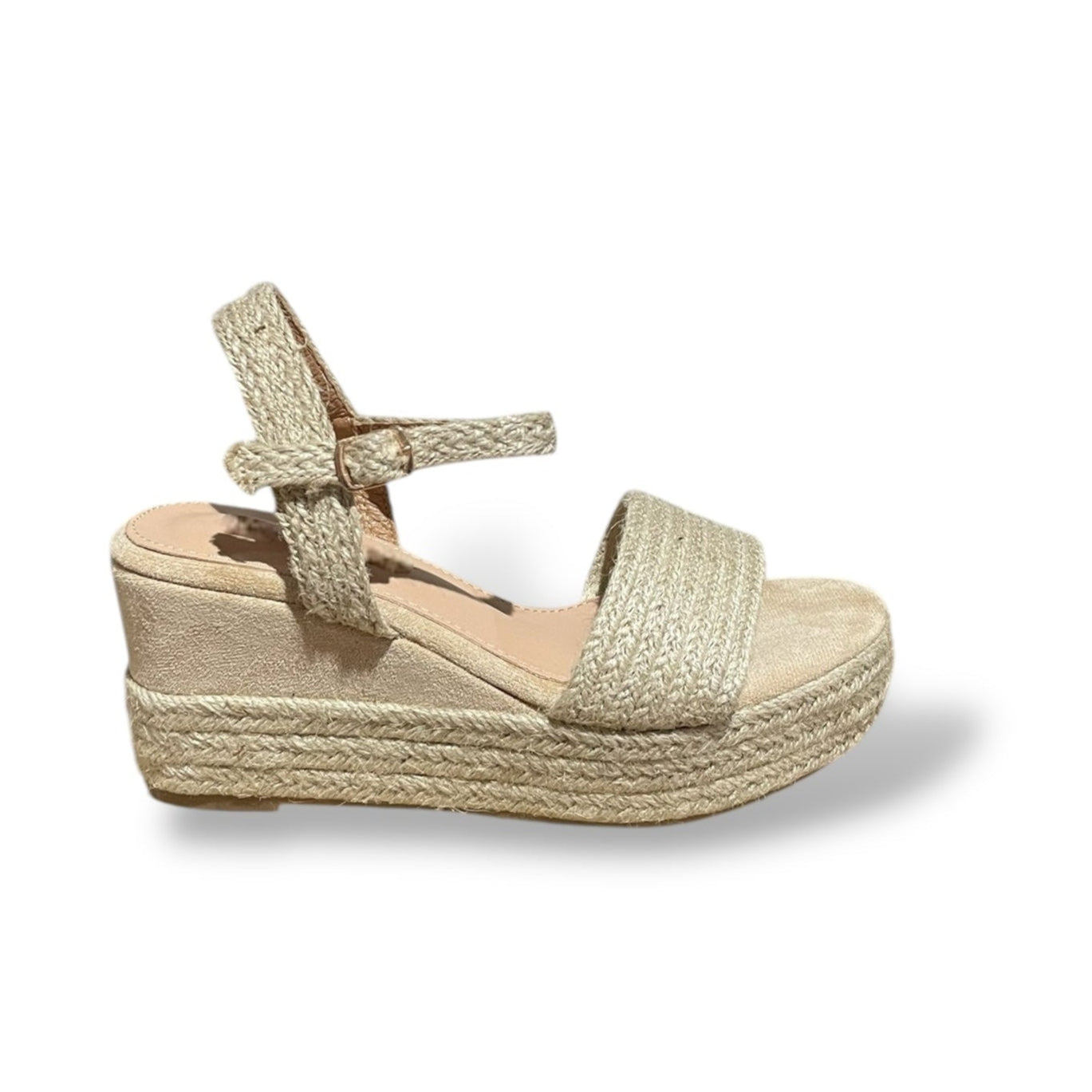 Sandalia de esparto con cuña y hebilla color beige