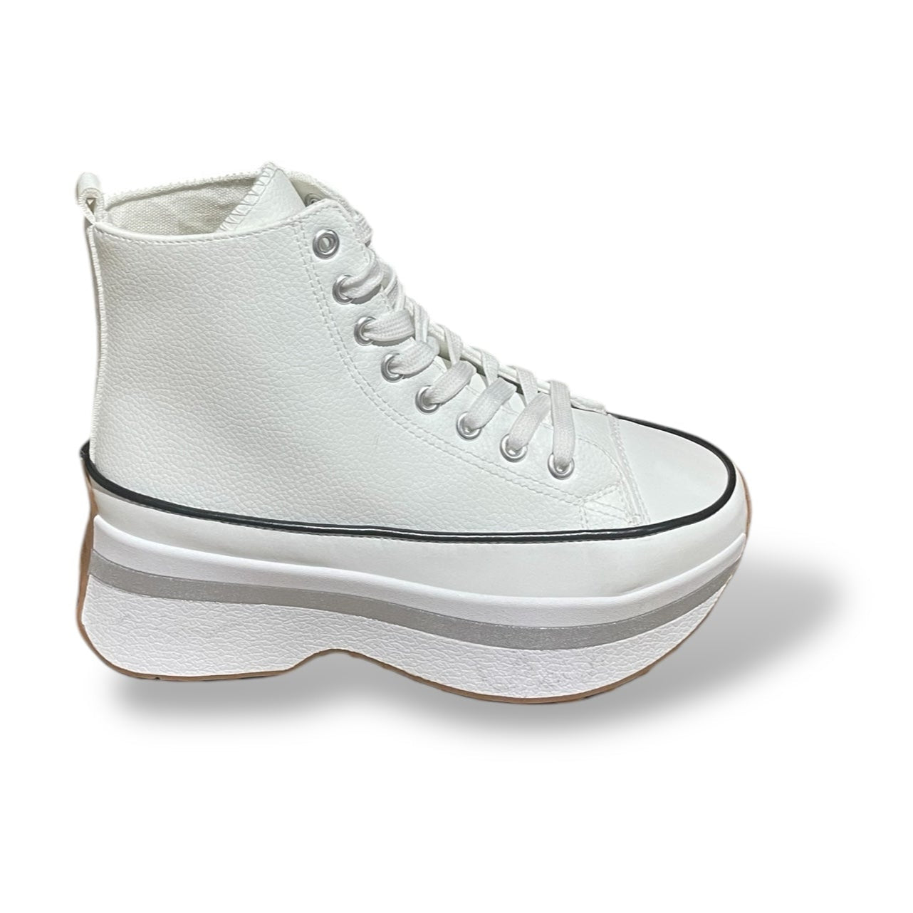 Calzado deportivo con plataforma con tejido de polipiel color blanco