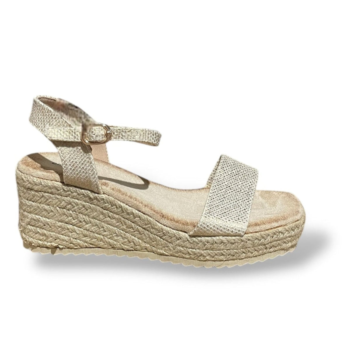 Cuña de esparto con plataforma con tira delantera y hebilla color oro