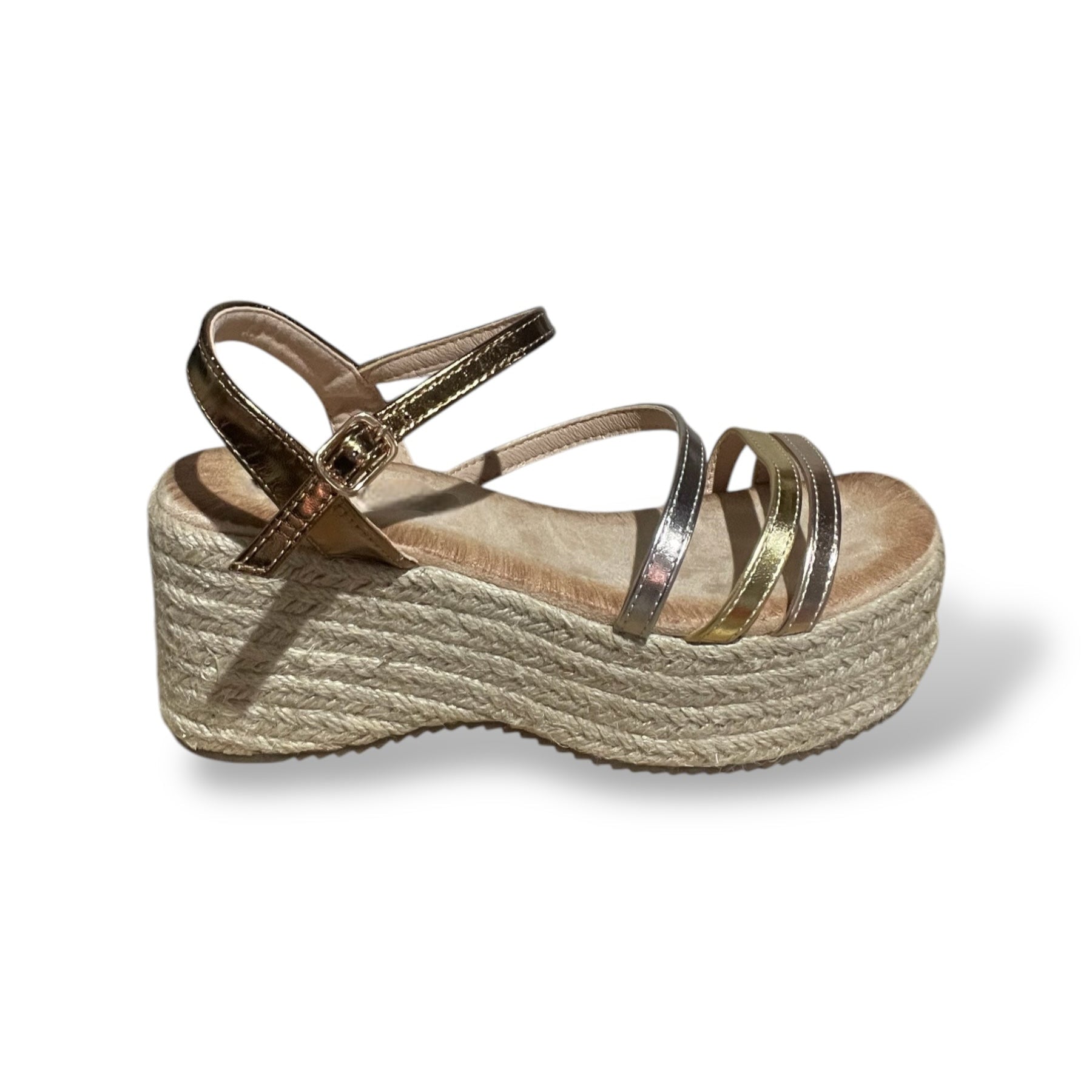 Sandalia de esparto con plataforma y tiras bicolor