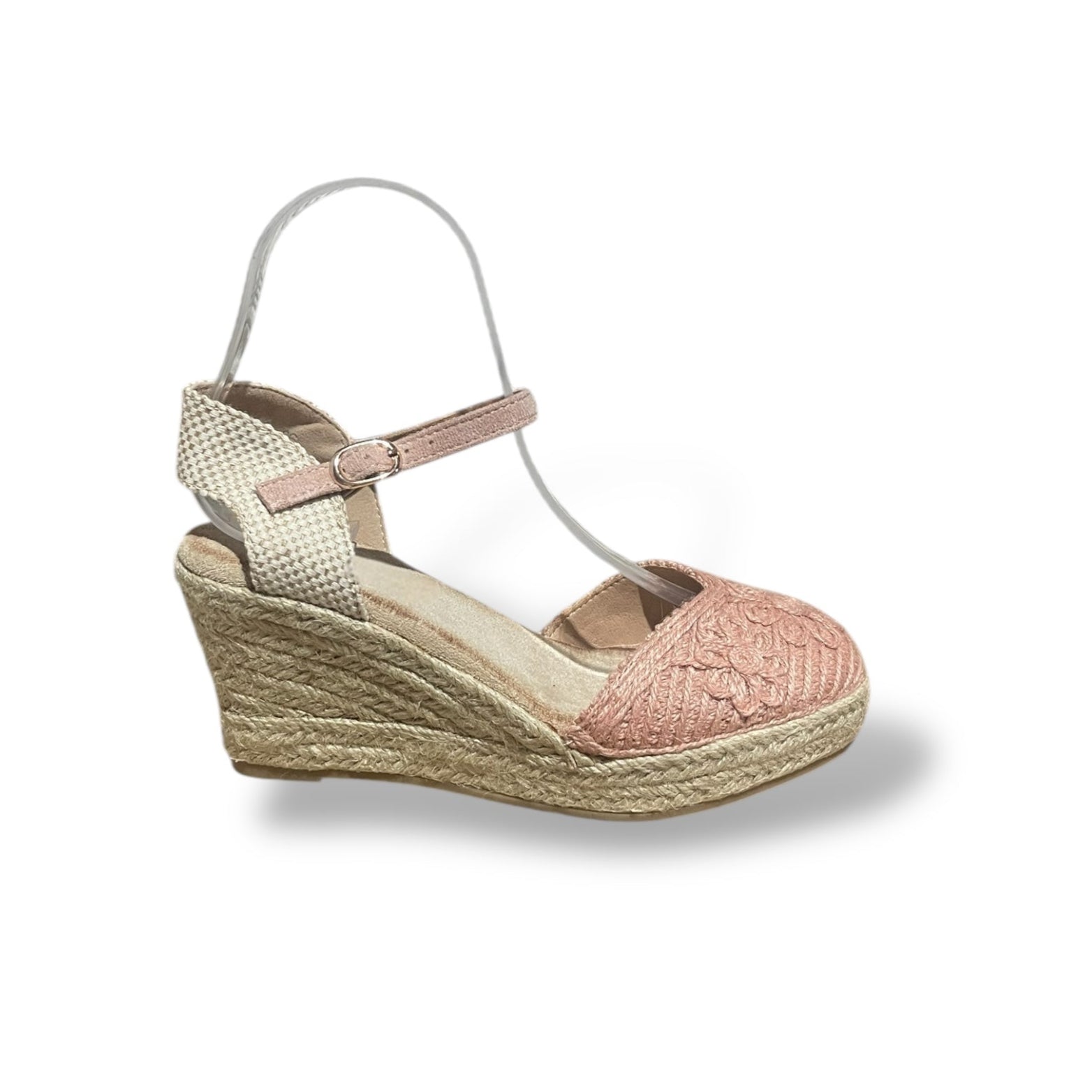 Cuña de esparto cerrado por delante con diseño en la punta con cierre de hebilla