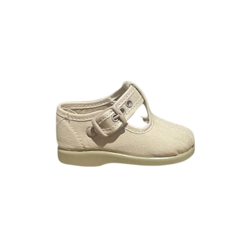 zapato de niño de lona con plantilla de lona y suela de goma anti deslizante en tono beige, hielo, clarito...