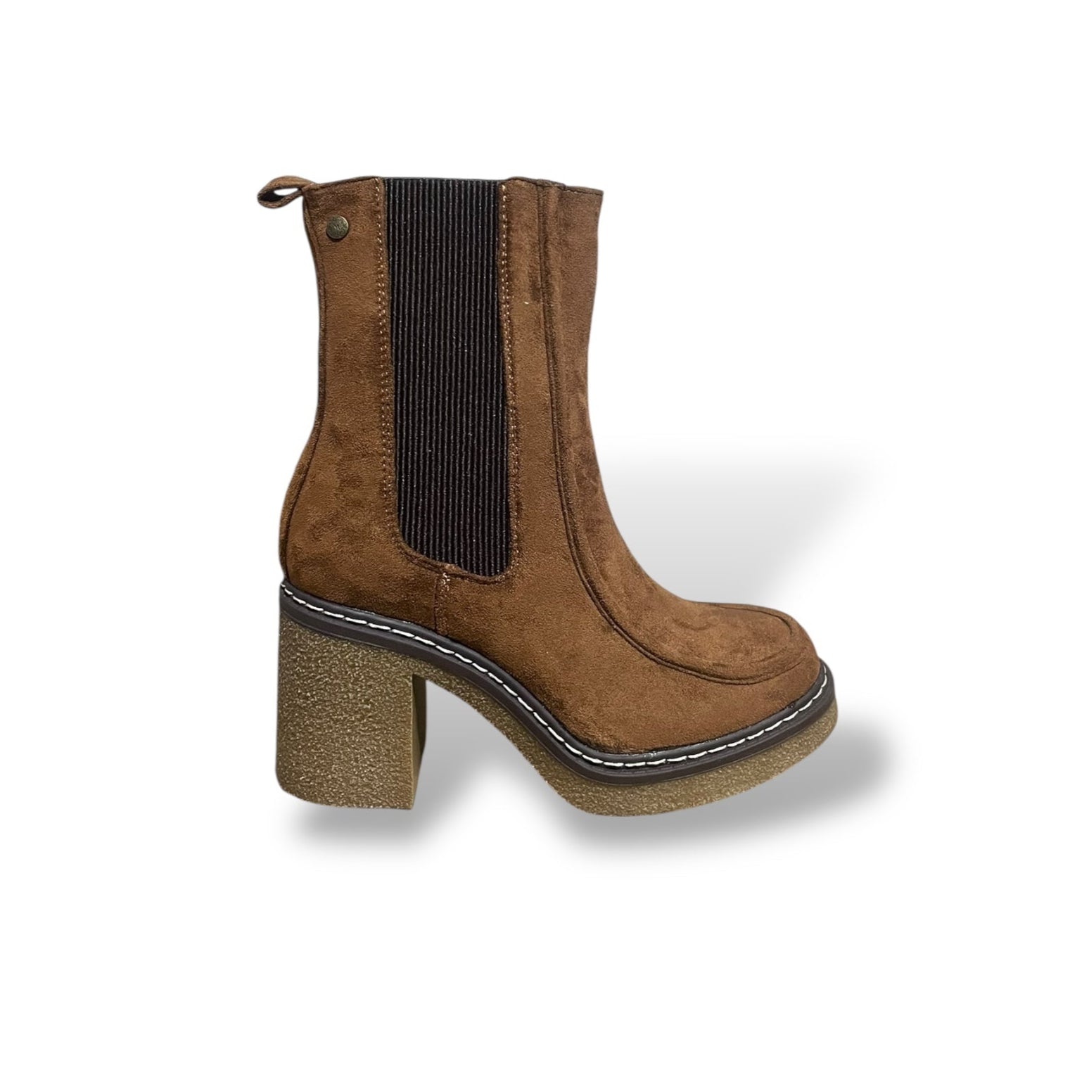 Botín de caña media con elastico lateral, plantilla de gel, suela de tocino antideslizante y cremallera lateral