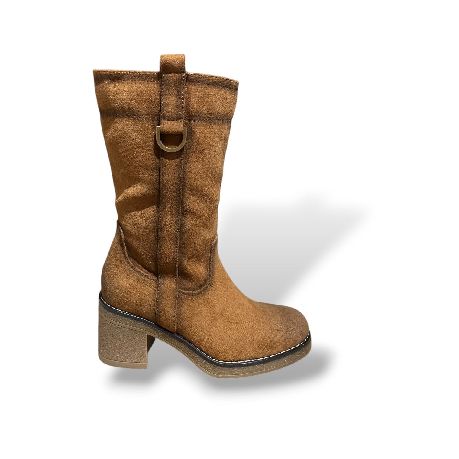 Bota de caña media pantorrilla, tacón y plataforma de tocino, puntera redonda, cremallera lateral y plantilla de gel