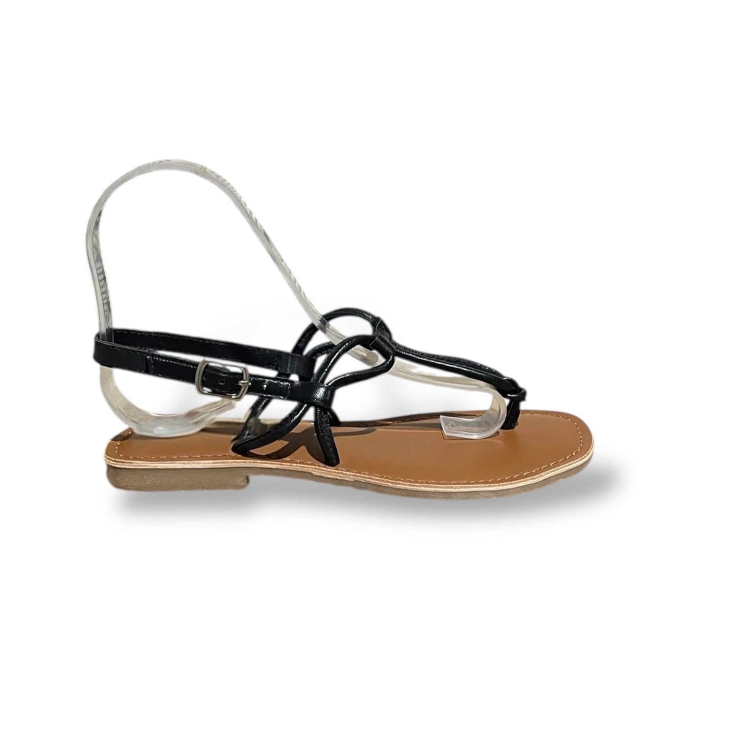 Sandalia plana con tiras negras plantilla de gel y forro de piel