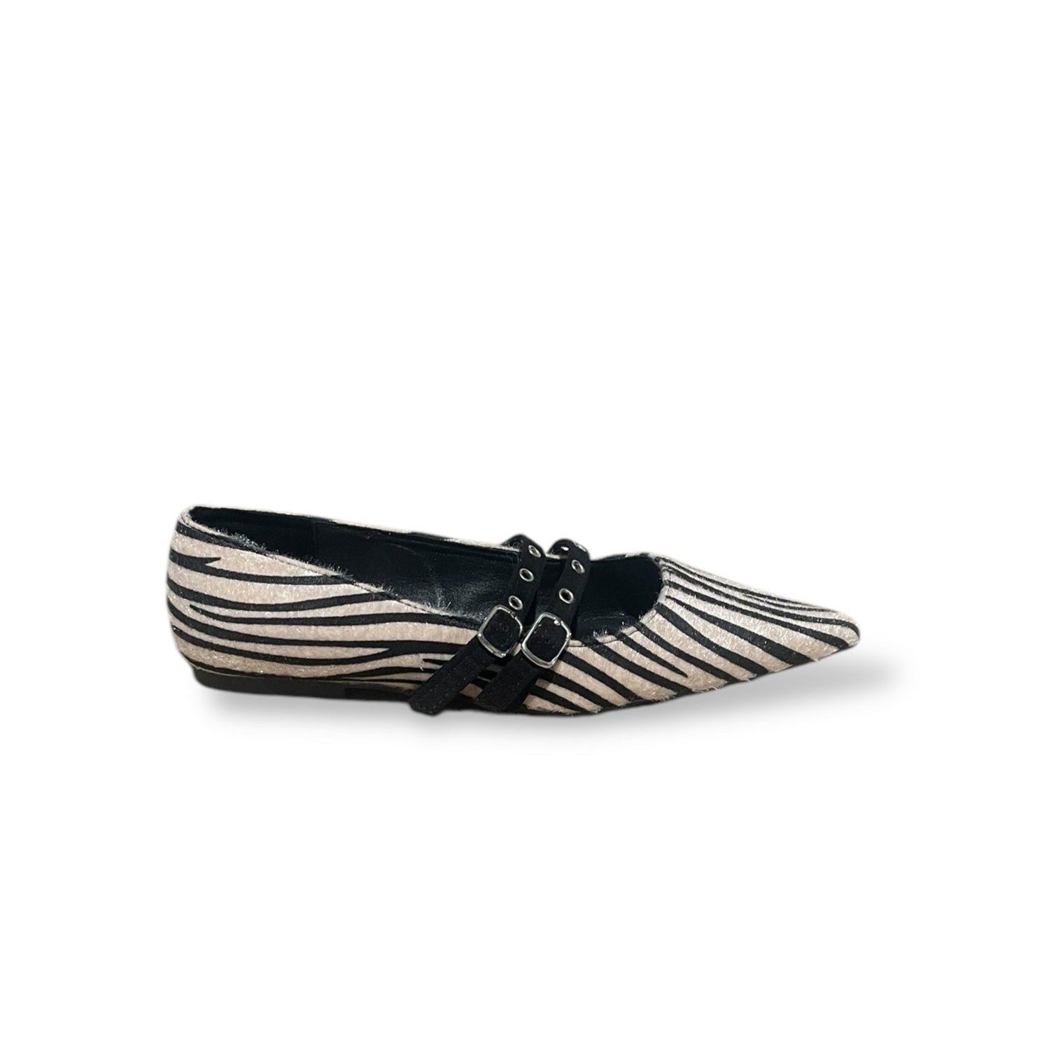 Bailarina plana con pelo de zebra sintetico y hebillas ajustables en el empeine con terminación de pico