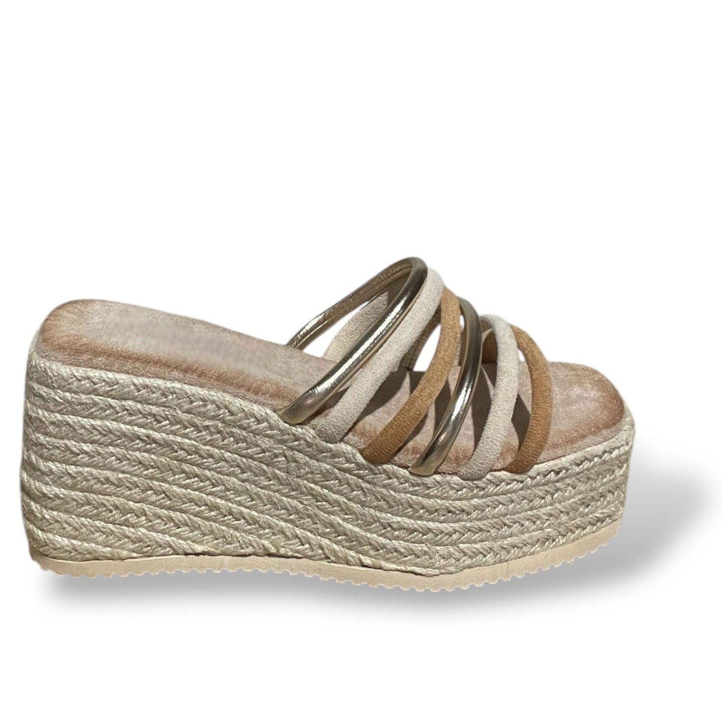 Cuña de esparto con tiras color camel